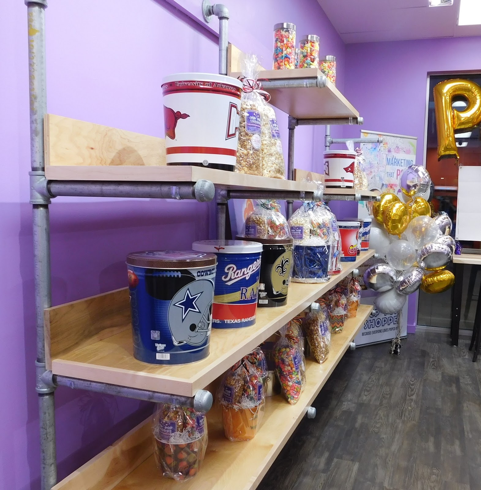 The Pop Pop Shoppe offers sport themed tins such as the Arkansas Razorbacks! |